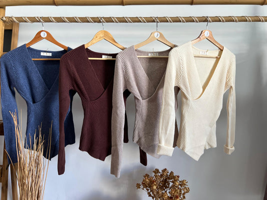 Malhinha canelada decote em V
