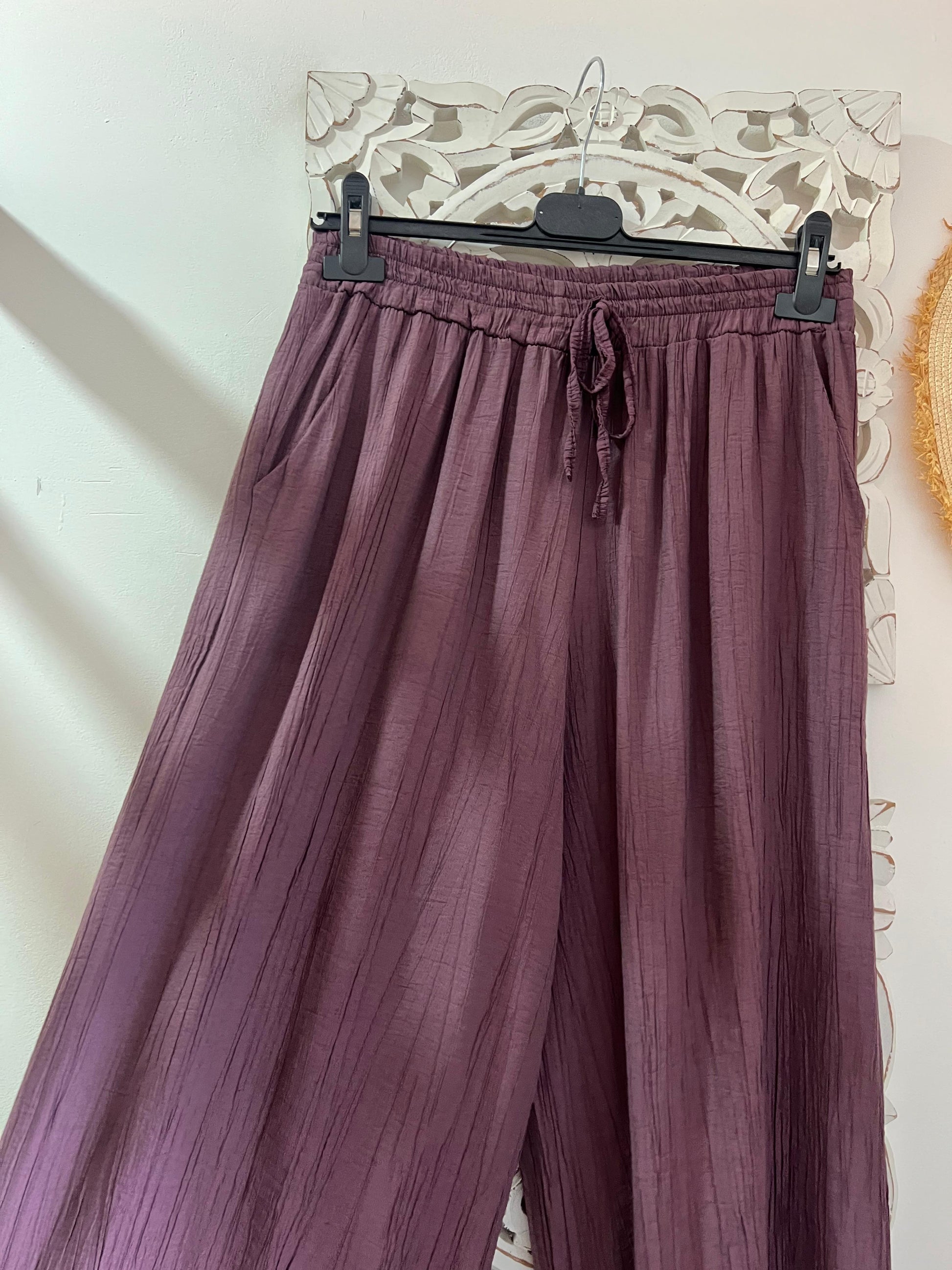 Calças tamanho único com elástico na cintura, com bolsos