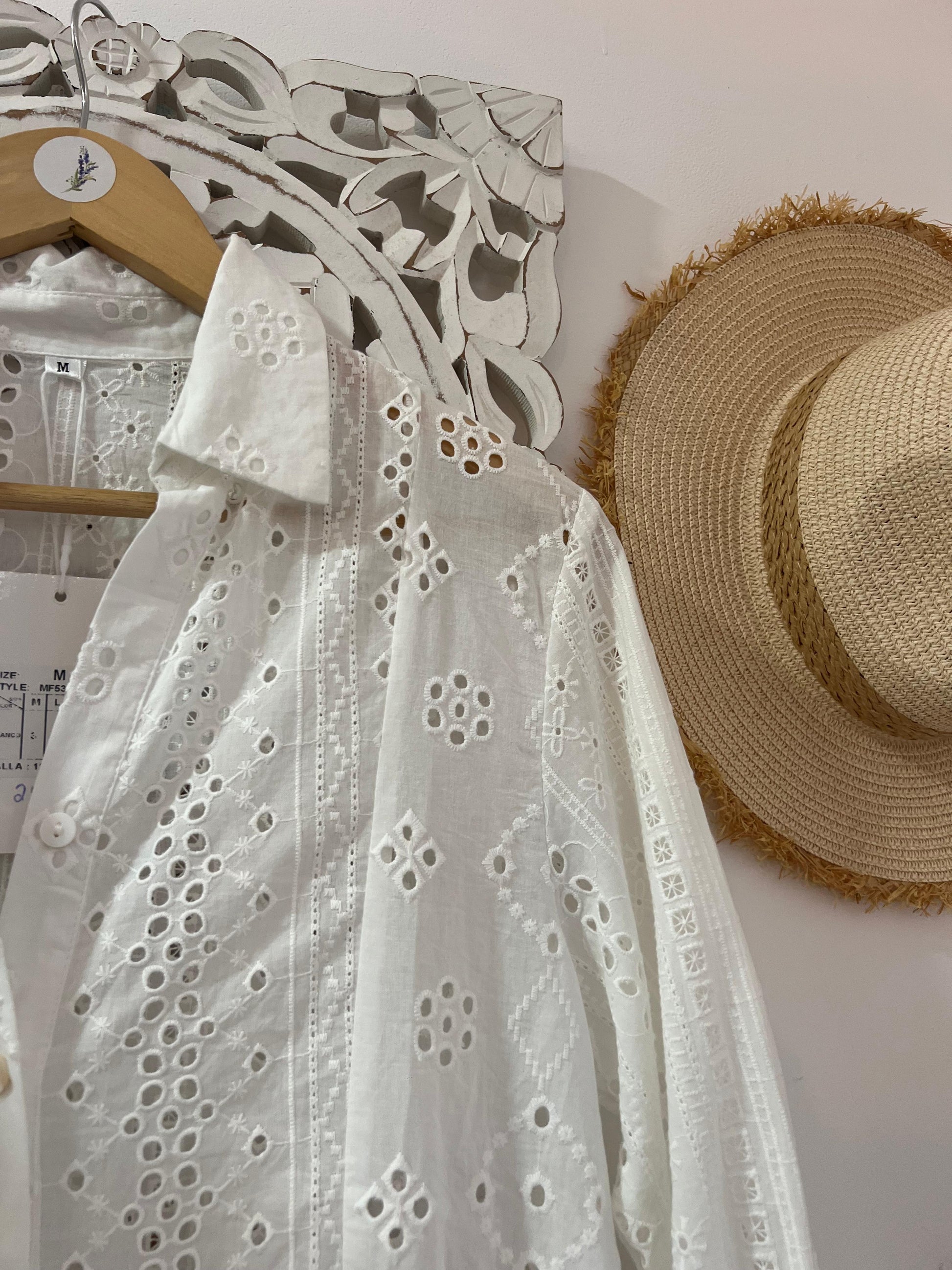 Camisa com colarinhos, bordado inglês