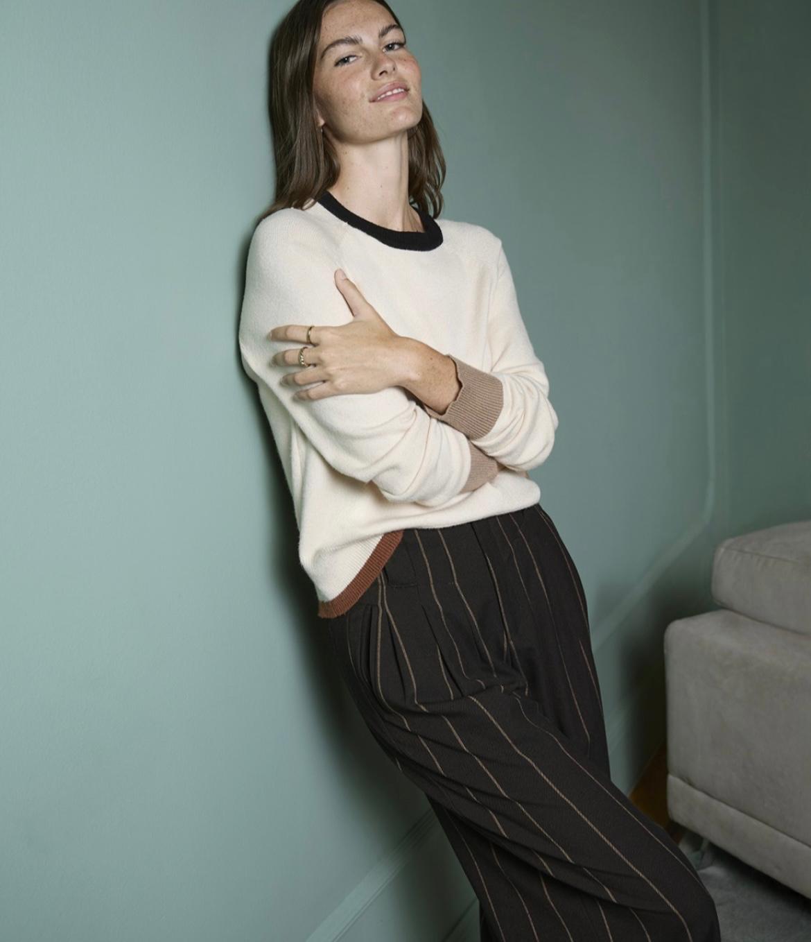Sirkana camisola em malha com acabamentos em cores cobtraste
