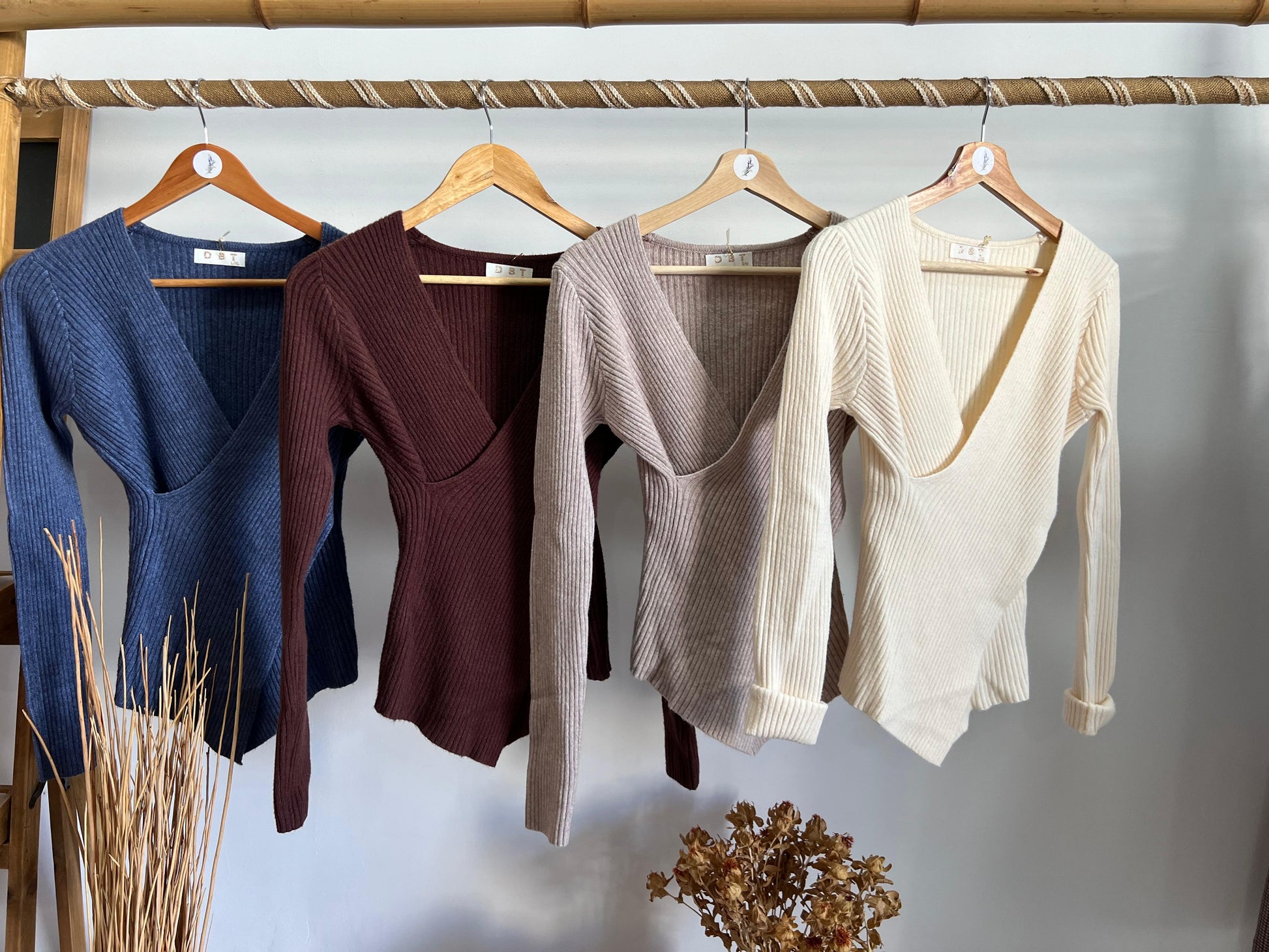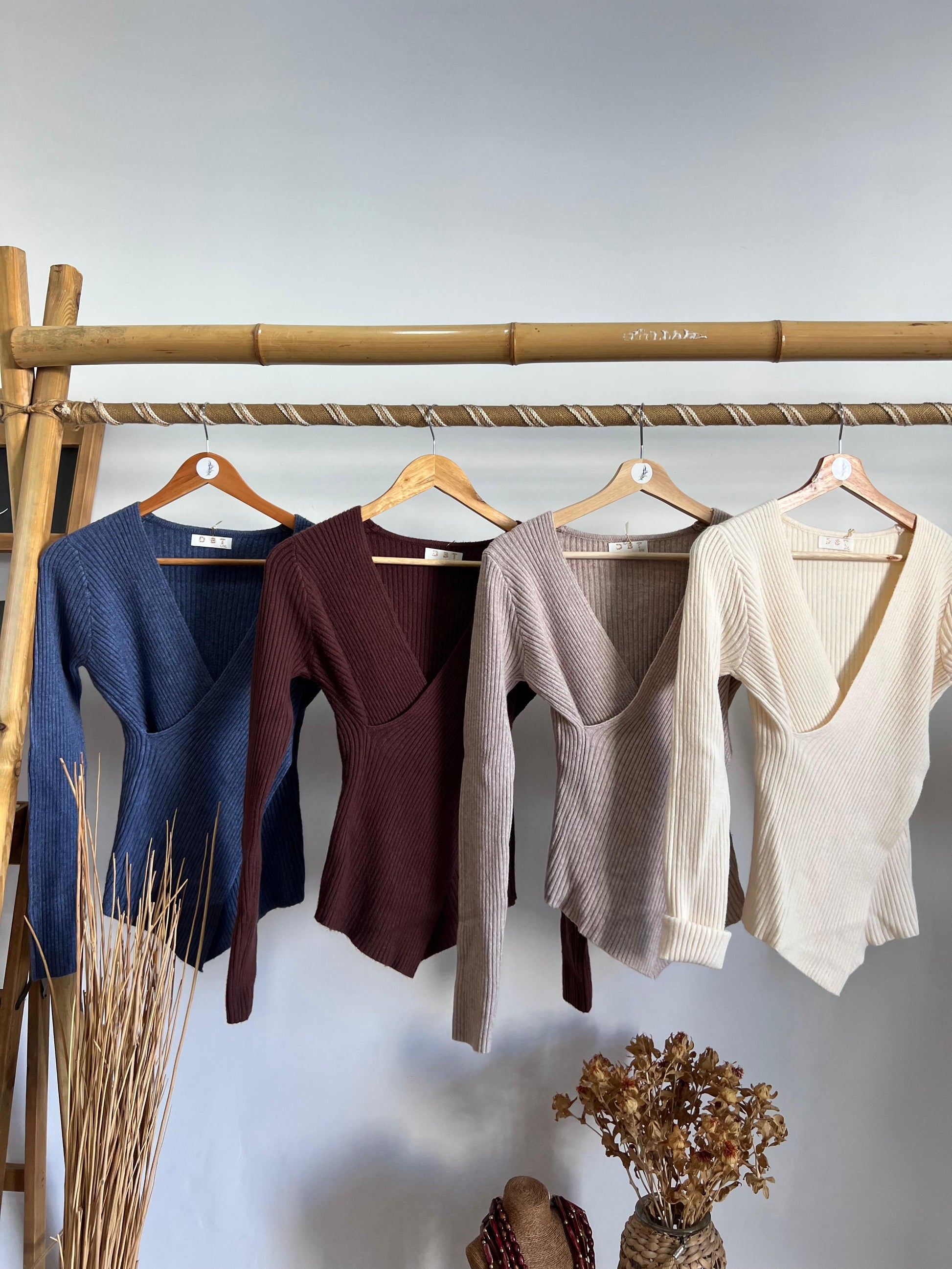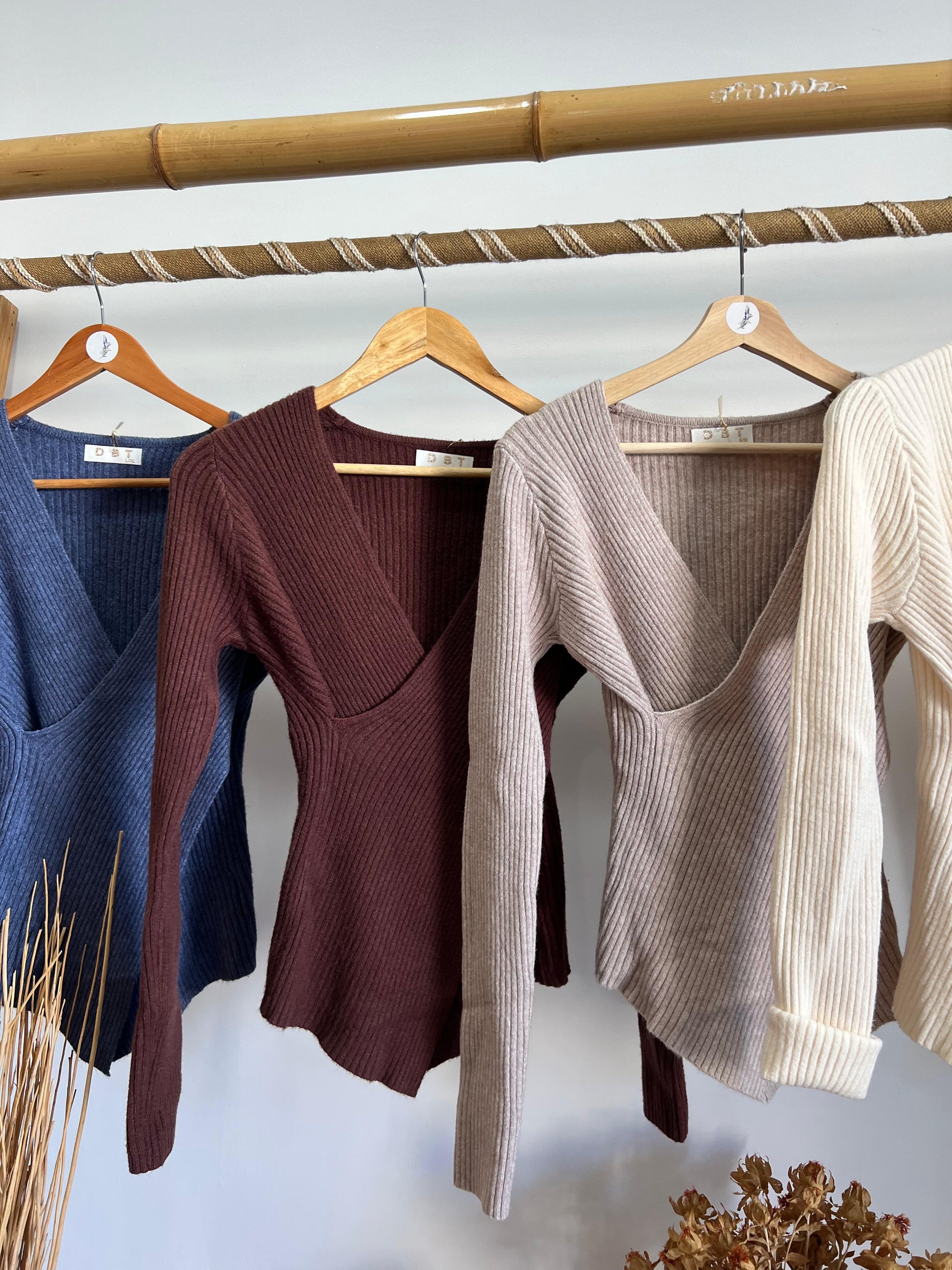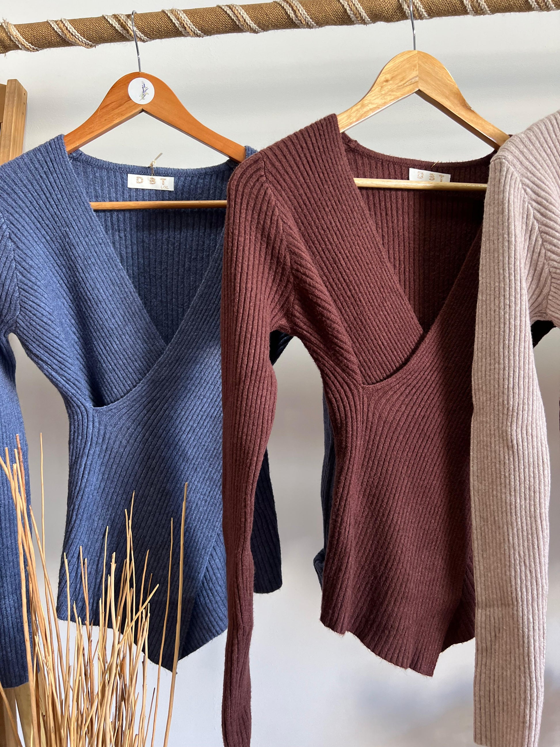 Malha em canelado cruzada decote em V