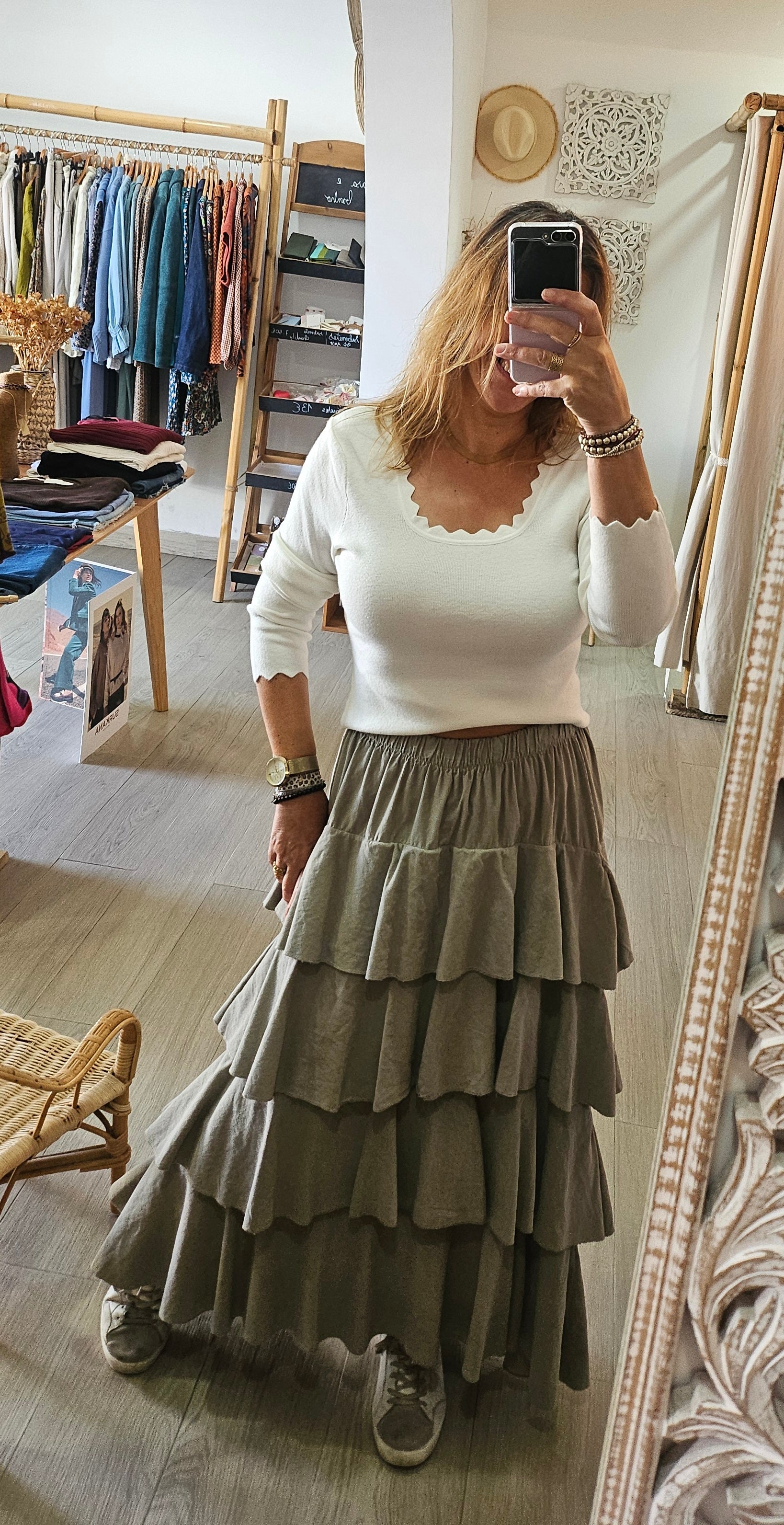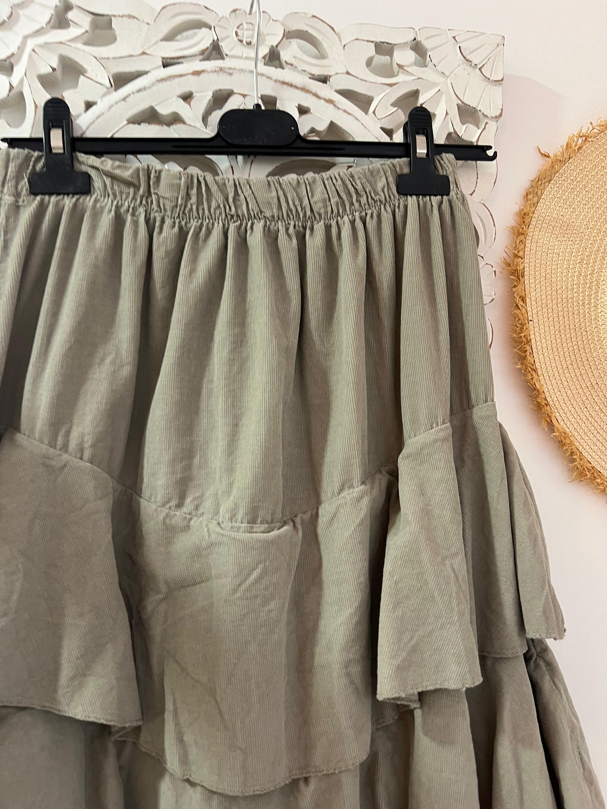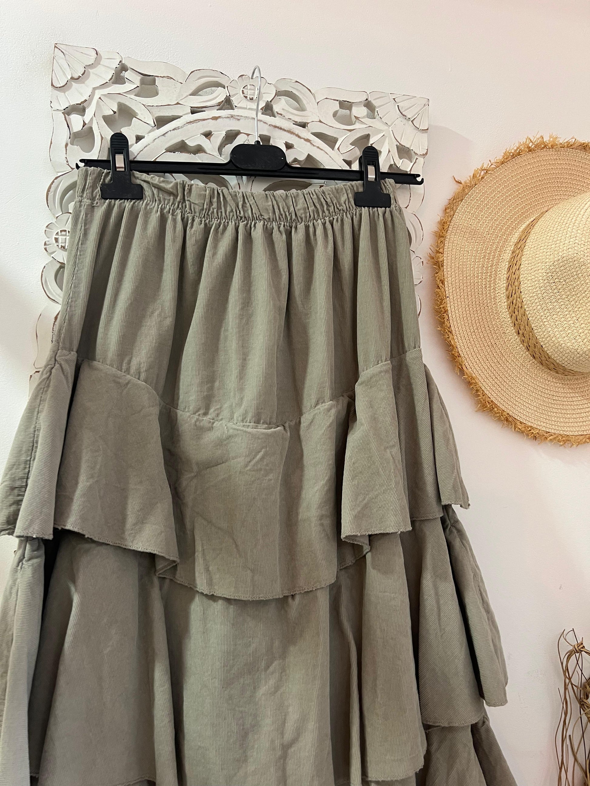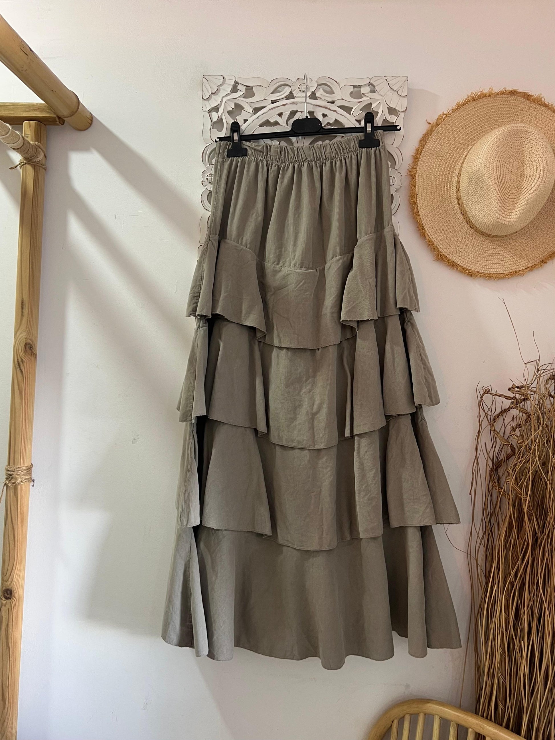 Saia comprida com folhos em micro bombazine