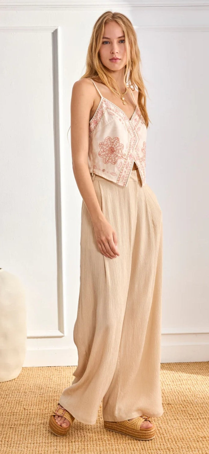 Top bordado com alças ajustáveis